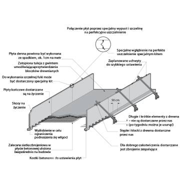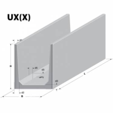 TX(X)Ściana oporowa typu “T”, długość czynna od 2 – 4m. Obustronnie obciążana. Maksymalne obciążenie przy obciążeniu zmiennym do górnej krawędzi ściany oporowej do 1000 kg/m2, odpowiadające obciążeniu do 3,5 tony na jedną oś lub dopełnienie ziemią przy maksymalnym spadku nasypu ponad górną krawędź do 35˚ i ciężarze objętościowym do 1800kg/ m³ (patrz schemat obciążenia). Elementy TX(X) mogą być wyprodukowane na wymiar o długości od 50 – 390 cm. |