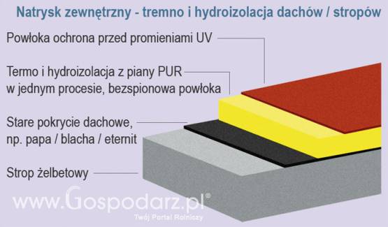 Ten system izolacji sprawdza się zarówno w budynkach nowych jak i już istniejących. Piana bardzo dobrze przylega do wszelkiego rodzaju powierzchni takich jak: blacha, drewno, materiały drewnopochodne, beton, pustak, papa, eternit.