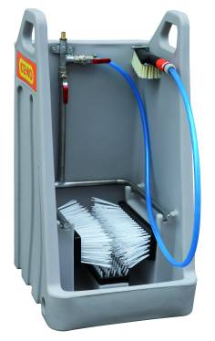 Zbiornik o pojemności 440l do AdBlue z uchwytem do przenoszenia i kieszenie na wózek widłowy.